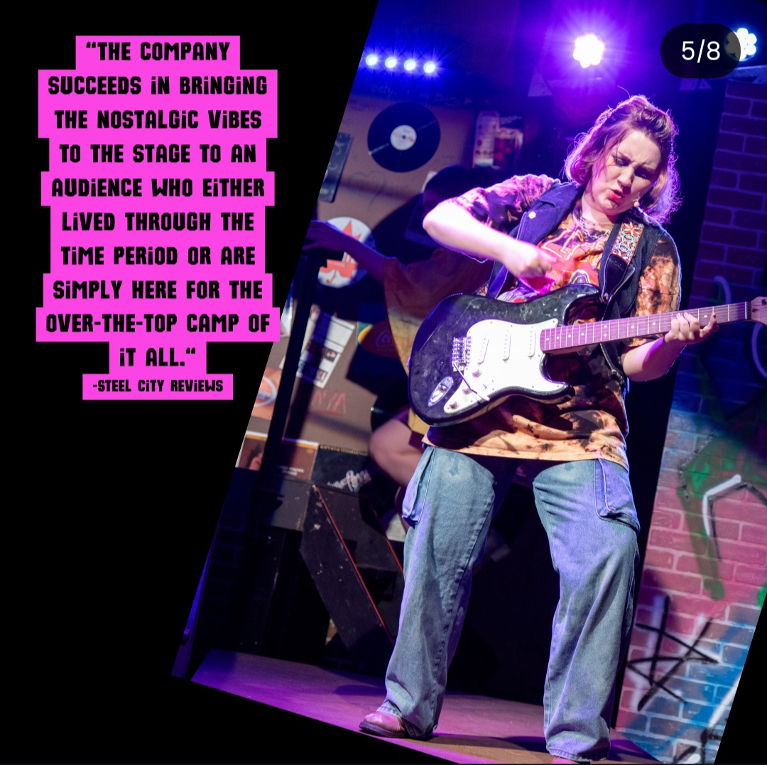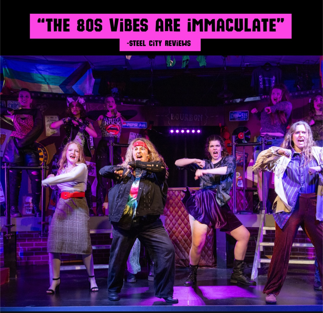 Rock of Ages is a jukebox musical with an ear-shredding score consisting of a compilation of hits by rockers of the '80s including Pat Benatar, Bon Jovi, Foreigner, Styx, Twisted Sister and, of course, Journey. As part of Curtain Call Performing Arts Company’s Musical Theatre Intensive Program, the large ensemble rocks out over pre-recorded arrangements that remain pretty close to the originals and each cast member has at least one solo number to showcase their efforts. While there are notable issues with the script and the seemingly endless number of mashups, the company succeeds in bringing the nostalgic vibes to the stage to an audience who either lived through the time period or are simply here for the over-the-top camp of it all.