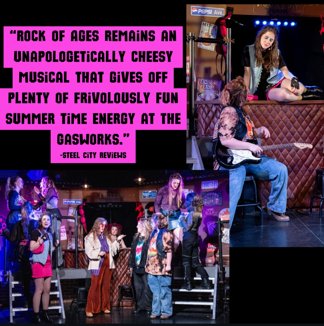 This high energy cast is having nothin' but a good time and if you can tolerate 2.5 hours of nostalgic 80's mashups, you will enjoy this production. Rock of Ages remains an unapologetically cheesy musical that gives off plenty of frivolously fun summer time energy at The Gasworks.